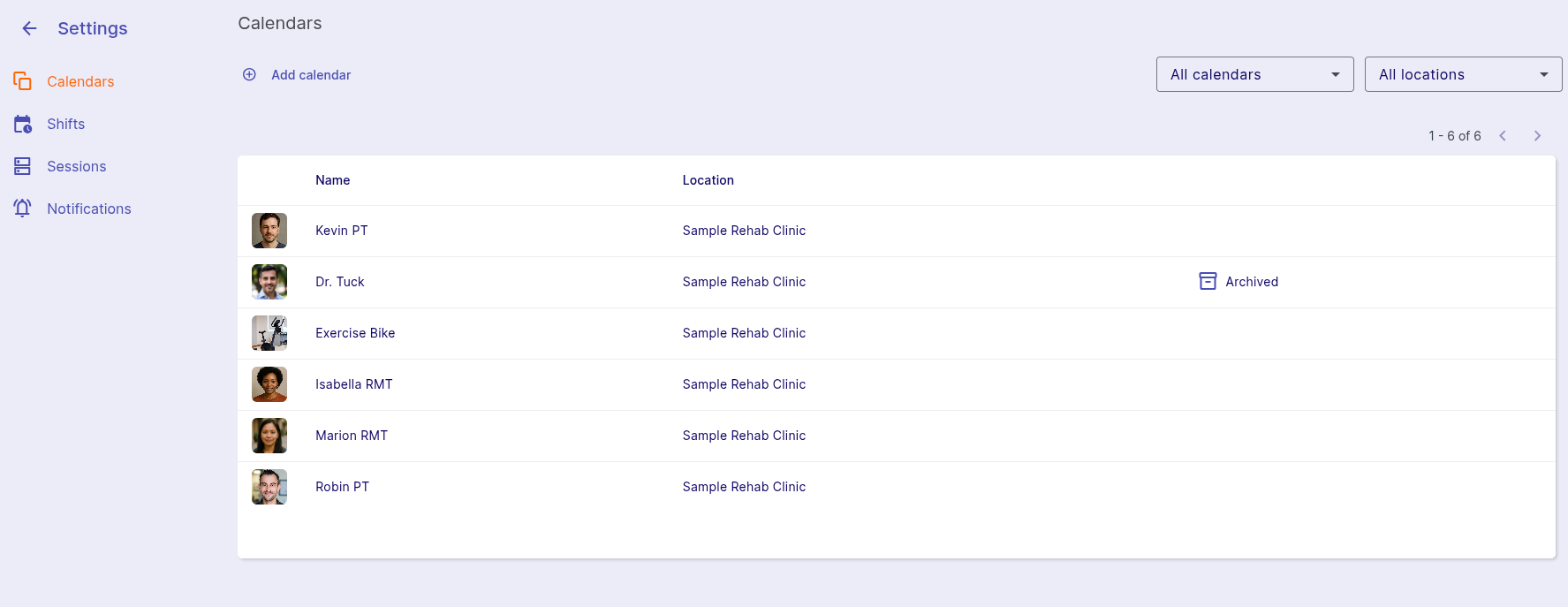 - In the list of calendars, select an archived calendar.